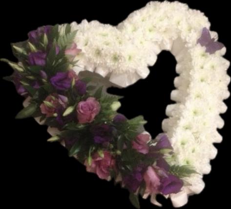 This stunning Open heart features a mix of pink and purple lisanthus and white chrysanthemums, creating a beautiful and eye-catching display.